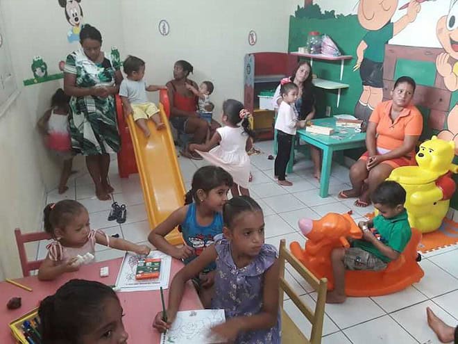 As crianças são atendidas no Contra-Turno, ou seja, horário que não estão na escola e são beneficiárias do Programa Bolsa Família ou são encaminhados pela Escola e Conselho Tutelar, todos estes grupos têm acompanhamento de Assistentes Sociais, Educadores Sociais e Psicólogos.