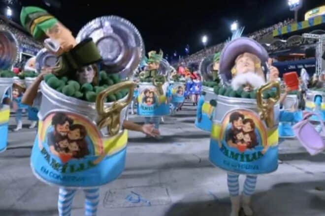 Uma das alas da agremiação apresentou uma crítica a conservadores e evangélicos. Nela, integrantes da escola estavam vestidos de lata. No rótulo, tinha uma imagem de um casal hétero com duas crianças e a frase: “família em conserva”. Após o desfile, políticos conservadores e as frentes parlamentares evangélica e católica criticaram a escola.