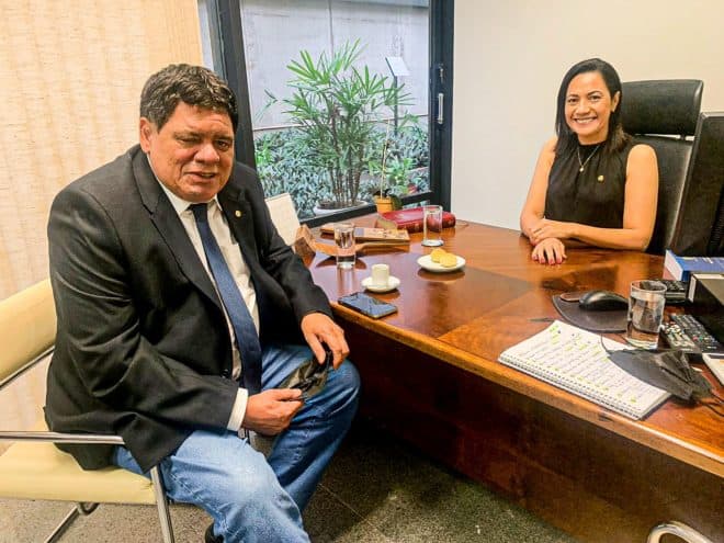 A presidente do Progressistas, senadora Mailza, recebeu em seu gabinete, em Brasília, o deputado federal e presidente do MDB, Flaviano Melo, nesta terça-feira, 09.