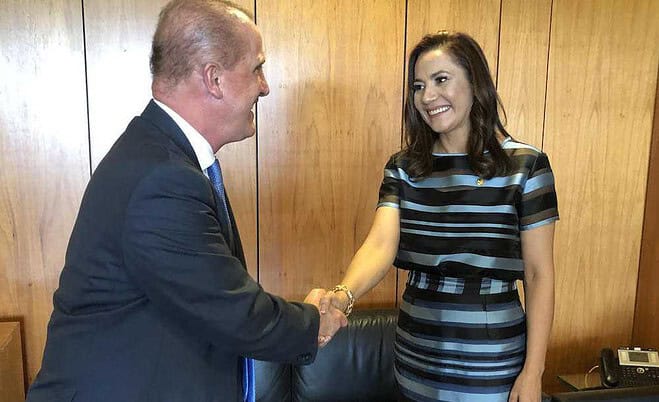 No primeiro dia de mandato, a senadora Mailza Gomes (Progressistas-AC) foi recebida pelo ministro da Casa Civil, Onyx Lorenzoni, em seu gabinete no Palácio do Planalto. A visita de cortesia teve como objetivo saudar o novo governo e garantir que sejam viabilizados recursos para o estado do Acre.