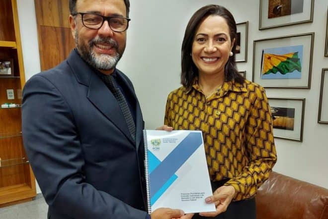 A senadora Mailza Gomes recebeu na tarde desta quinta-feira, 21, em seu gabinete, das mãos do representante do Acre em Brasília, Ricardo França, o caderno de propostas prioritárias para emendas individuais e de bancada referentes à Lei Orçamentária Anual de 2022. Na oportunidade, a senadora reafirmou mais uma vez seu compromisso com o Governo de Gladson Cameli e com o povo do estado do Acre.