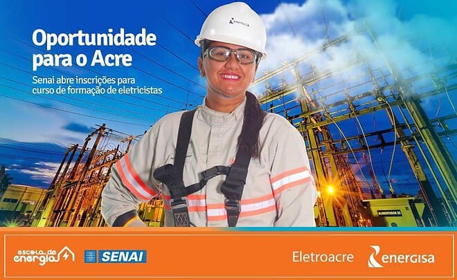 O Senai está possibilitando a abertura do processo seletivo, e a Eletroacre apoia essa iniciativa, para curso de formação para eletricistas de redes de distribuição de energia elétrica em Rio Branco e Cruzeiro do Sul. Ao todo serão 60 vagas e é necessário ter ensino médio completo ou em andamento, além de idade mínima de 18 anos.