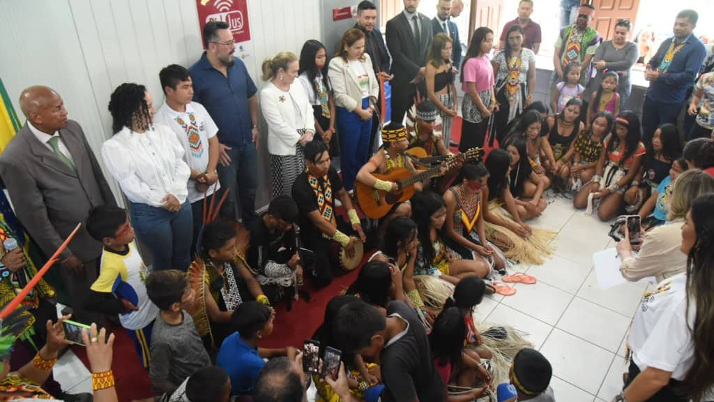 Em clima de celebração, com adereços coloridos e pinturas nos corpos, o povo indígena Huni Kuin recebeu os visitantes na manhã desta segunda-feira, 24, para um momento inédito. A comunidade e a população que habita a região, terão a partir de agora os serviços da Justiça mais próximo, por meio da instalação de um Ponto de Inclusão Digital (PIDJus) do Poder Judiciário acreano.