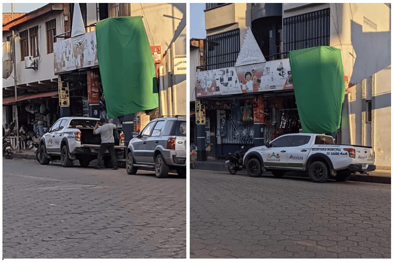 Nas fotos, é possível ver o veículo com a tampa da carroceria aberta enquanto um homem embarca alguma coisa. De acordo com a informação que chegou junto com o material, de maneira anônima, o motorista estaria fazendo compras no lado boliviano com o uso do carro oficial da prefeitura de Assis Brasil.