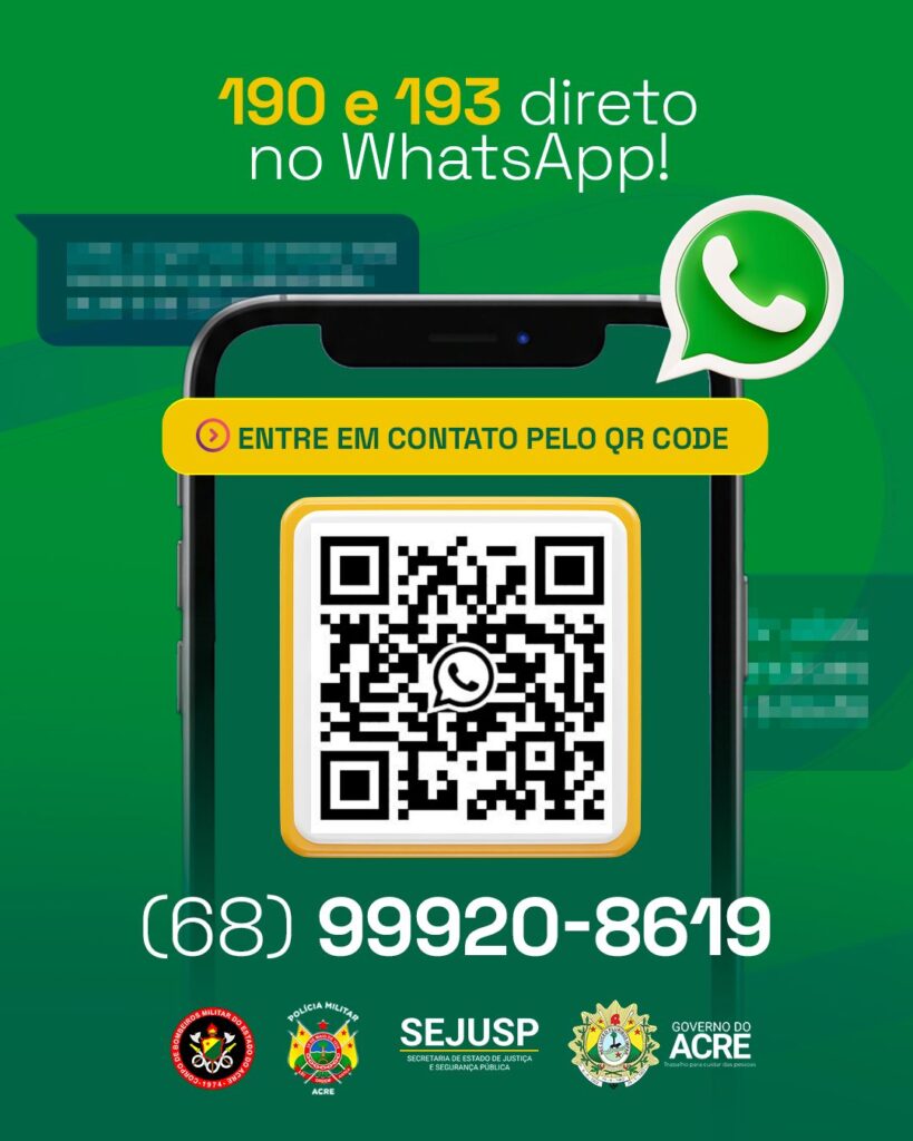 A Secretaria de Estado de Segurança Pública do Acre (Sejusp), por meio do Centro Integrado de Comando e Controle (Cicc), implementou nesta quinta-feira, 12, um novo canal de atendimento emergencial, via aplicativo de mensagens WhatsApp, para complementar os números disponíveis no Estado, como o 190 e o 193.