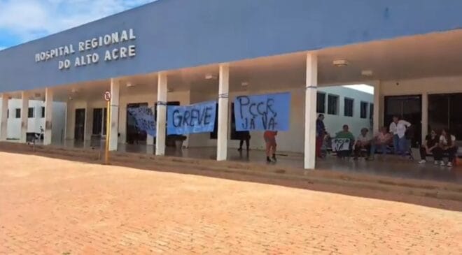 Brasiléia/AC – Servidores da saúde do Acre realizaram uma manifestação nesta terça-feira (17) em frente ao Hospital Regional do Alto Acre, em Brasiléia, para cobrar do governo estadual a conclusão e envio à Assembleia Legislativa do novo Plano de Cargos, Carreiras e Remuneração (PCCR). O protesto, organizado pelo Sindicato dos Trabalhadores em Saúde do Estado do Acre (Sintesac), integra uma paralisação de advertência aprovada em assembleia e se repetiu em outras cidades, como Rio Branco.