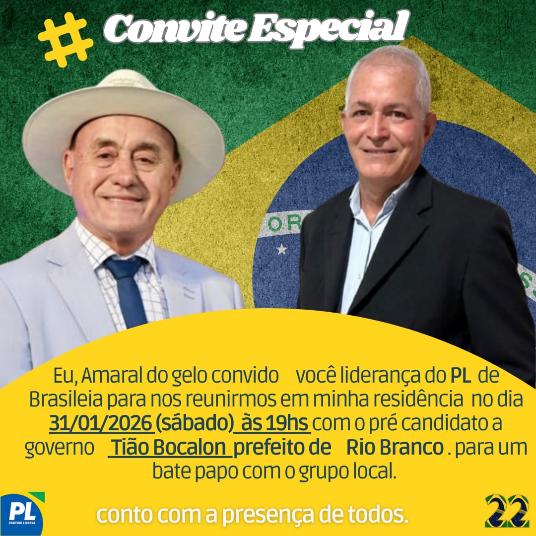 O Partido Liberal (PL) de Brasiléia divulgou uma nota oficial anunciando apoio à pré-candidatura do prefeito de Rio Branco, Tião Bocalom, à disputa pelo Governo do Acre nas eleições de 2026. O documento foi assinado pelo presidente municipal do PL e vice-prefeito de Brasiléia, Amaral do Gelo.
