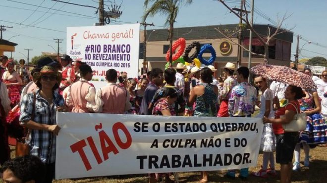 Protesto da educação durante passagem da tocha/Foto: Assessoria Sinteac