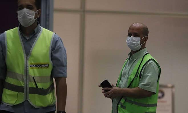 Passageiros e funcionários circulam vestindo máscaras contra o novo coronavírus (Covid-19) no Aeroporto Internacional Tom Jobim- Rio Galeão