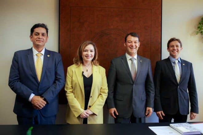 A deputada Socorro Neri(PP/AC) reuniu na tarde desta quinta-feira,6,em seu gabinete em Brasília os deputados Roberto Duarte(Republicanos),Eduardo Veloso(União Brasil) e o secretário estadual de Fazenda, Amarísio Freitas, para uma discussão mais aprofundada acerca da reforma tributária que foi votada no plenário da Câmara dos Deputados logo em seguida à noite. ”Estamos analisando o impacto da reforma para o país, para a Amazônia e sobretudo para o nosso Estado”, disse a deputada.