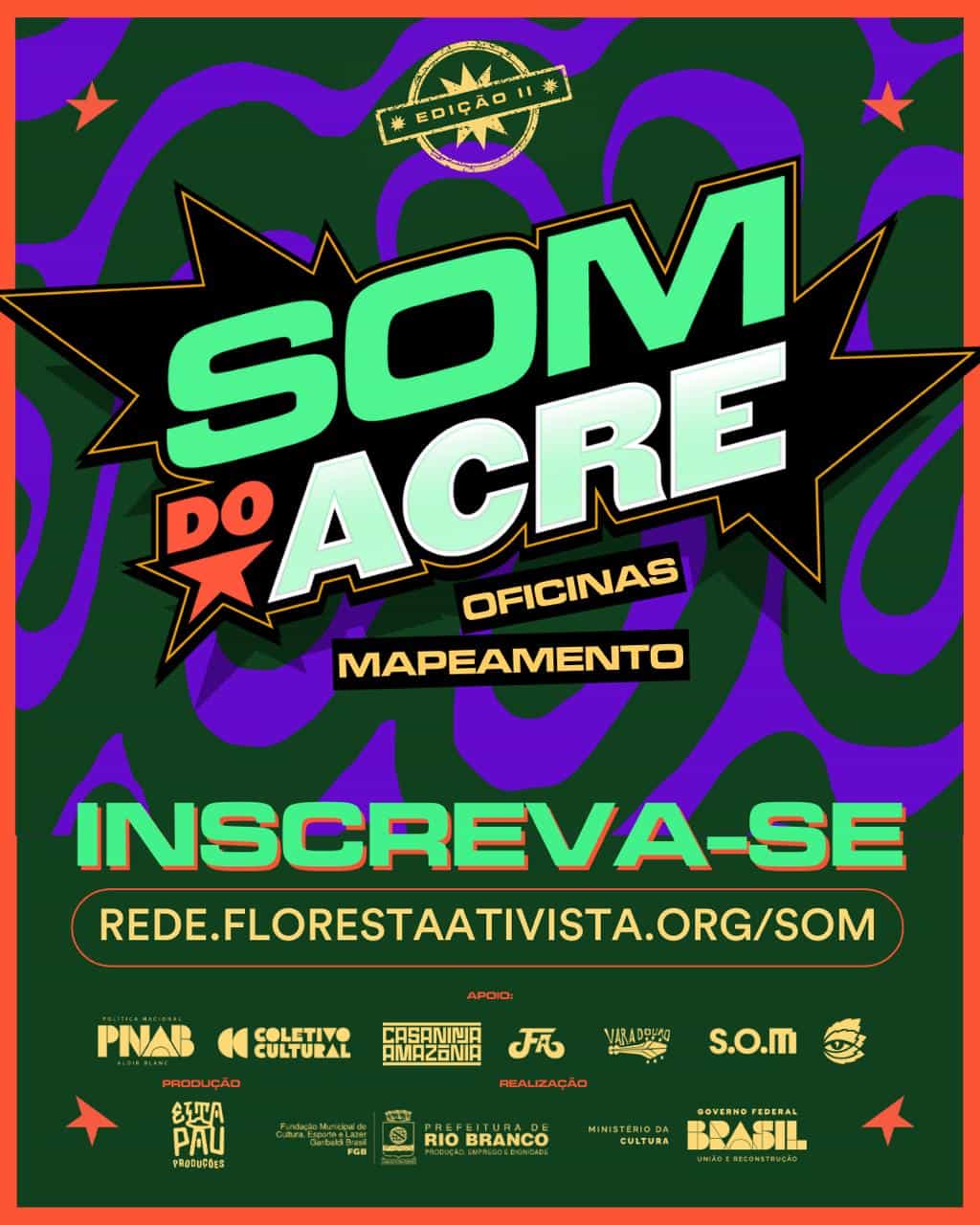 Artistas e bandas acreanas já podem se inscrever na 2ª edição do projeto Som do Acre, iniciativa que busca mapear, fomentar e fortalecer a cena musical autoral no estado. A proposta oferece oficinas formativas voltadas para gestão de carreira, distribuição digital e estratégias de comunicação, além da possibilidade de participação no line-up da 7ª edição do Festival Varadouro, que acontece ainda este ano.