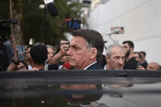 O ex-presidente Jair Bolsonaro quando depôs à PF sobre suposta trama golpista denunciada pelo senador Marcos do Val Foto: EFE/ Andre Borges