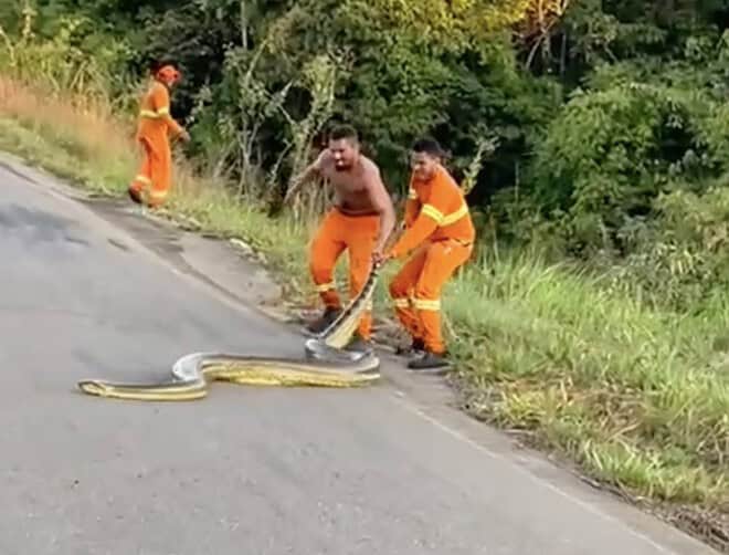 O réptil foi visto perto de um ponto de banho local, e os servidores registraram imagens enquanto tentavam afugentar a cobra de volta ao seu habitat natural nas matas próximas à rodovia. Apesar da preocupação inicial com o impacto no tráfego, a situação foi controlada graças às sinalizações da obra em andamento.