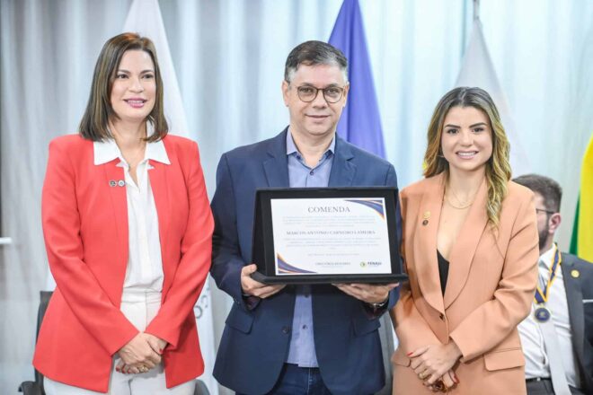 A honraria foi entregue pela presidente da FENAJU, Gregória Brenário, e pela presidente da Junta Comercial do Acre (JUCEAC), Nayara Honorato, em reconhecimento aos serviços e apoio prestados ao aprimoramento do registro de empresas. O evento contou com a presença do governador Gladson Cameli, que na ocasião também foi homenageado, assim como o presidente da Acisa, Marcelo Moura.
