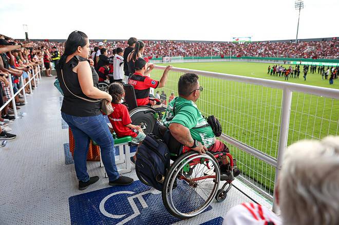 Um dos pontos primordiais nas melhorias de revitalização ocorridas no Estádio Arena da Floresta, foi a inclusão do espaço de acessibilidade para os torcedores. O cadeirante Luiz Paulo Melo destacou esse momento de poder assistir ao jogo.