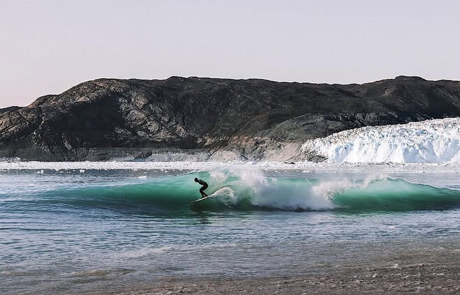 Surfista português Eurico Romaguera surfando onda na Groenlândia (Reprodução)