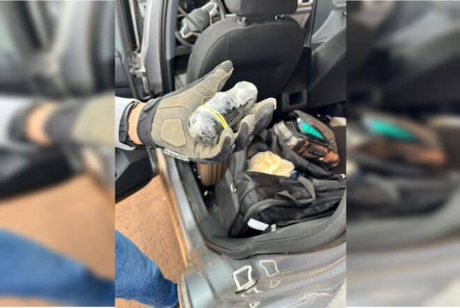 A polícia ressaltou que o explosivo apreendido é do tipo fragmentário, considerado armamento de guerra, com potencial letal em um raio de até 15 metros.
