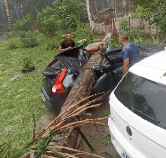 Susto! Árvore cai e destrói veículo durante vendaval em balneário em Cruzeiro Sul