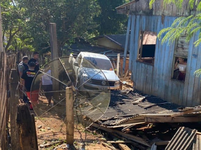 A caminhonete após cruzar a rua ladeira abaixo, bateu contra duas residências e por pouco não invade a segunda. Apesar do susto, ninguém foi ferido, registrando apenas danos materiais.