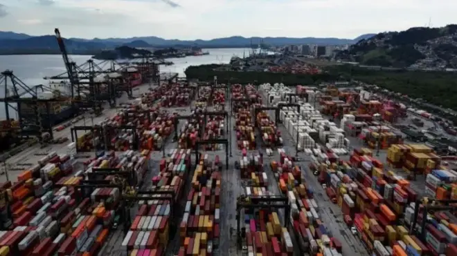 Imagem de drone mostra conteineres no Porto de Santos (SP) • REUTERS/Amanda Perobelli