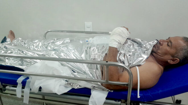 Ferido, o taxista buscou ajuda no bairro onde mora. Ele foi levado ao Hospital Marinho Monte, em Plácido de Castro, e depois transferido para o pronto-socorro de Rio Branco, onde recebeu atendimento e passou por exames. Apesar do susto, sofreu apenas lesões leves na mão esquerda.
