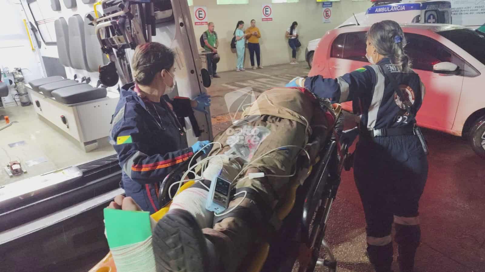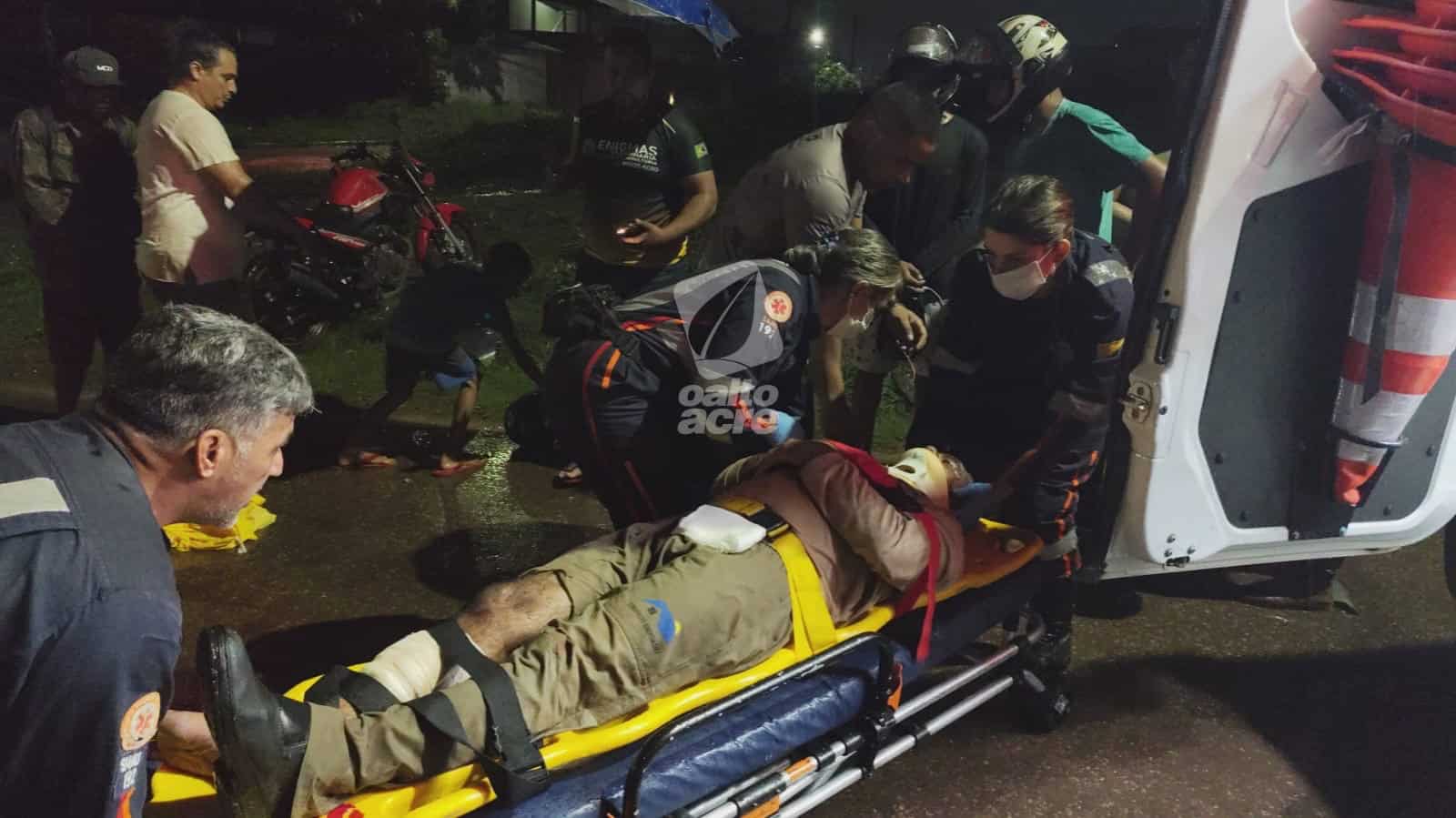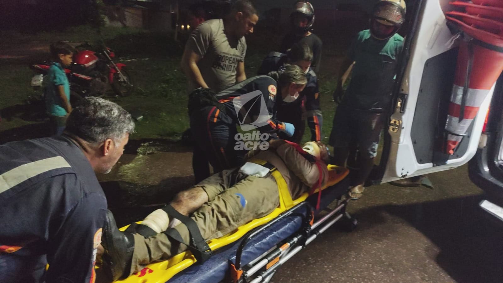 Um acidente envolvendo um carro e uma motocicleta deixou Elísio Pinheiro Lira, de 48 anos, ferido na noite desta segunda-feira (8), no cruzamento da Estrada Raimundo Irineu Serra com a Avenida 25 de Dezembro, no bairro Tancredo Neves, em Rio Branco.