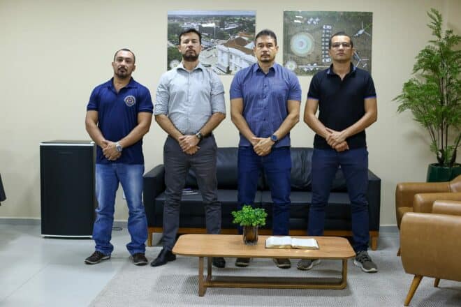 Armamentos, viaturas e avanços no sistema de radiocomunicação, no âmbito das forças de segurança do Acre, completaram a pauta da visita institucional, que aconteceu na sede da Secretaria. Na oportunidade, Paulo Cézar esteve acompanhado da secretária adjunta da pasta, delegada Márdhia El-Shawwa Pereira, e de assessores técnicos.