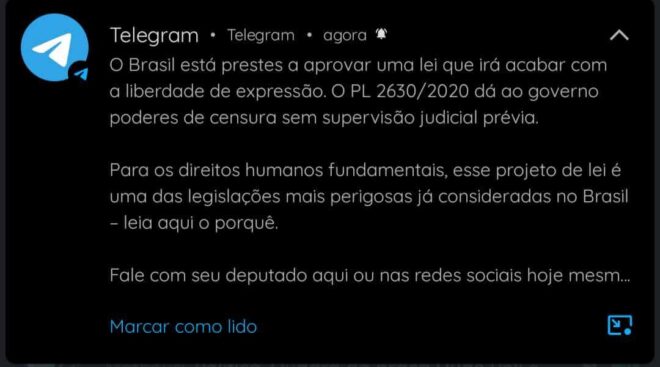 Por exemplo, o Ministro da Justiça requisitou recentemente sanções contra o Telegram, alegando que o aplicativo “não respondeu a uma solicitação” – antes mesmo da solicitação ser feita. Se o PL 2630/2020 estivesse em vigor, o governo poderia ter bloqueado imediatamente o aplicativo como “medida preventiva” até que o Telegram provasse que não violou nenhuma lei.