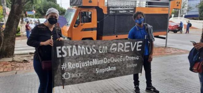 Na segunda (10), os grevistas fizeram carreta com início no estacionamento da Arena Acreana, no Segundo Distrito. O ato seguiu até o Centro de Rio Branco, passando pela Casa Civil e o Palácio.