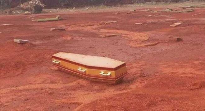 Um forte temporal atingiu a cidade de Paracatu, na região noroeste de Minas Gerais, e causou estragos em um dos principais cemitérios da cidade no último sábado (15). Três caixões foram arrastados e ficaram à mostra no terreno do Cemitério Parque da Paz.