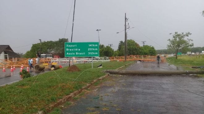 Um forte temporal acorrido por volta das 14h40 desta segunda-feira dia 6, no município de Senador Guiomard, derrubou uma torre de comunicação encima de outros cabos e fibra ótica no entroncamento de acesso à Plácido de Castro e Capixaba, consequentemente os da regional do Alto Acre.