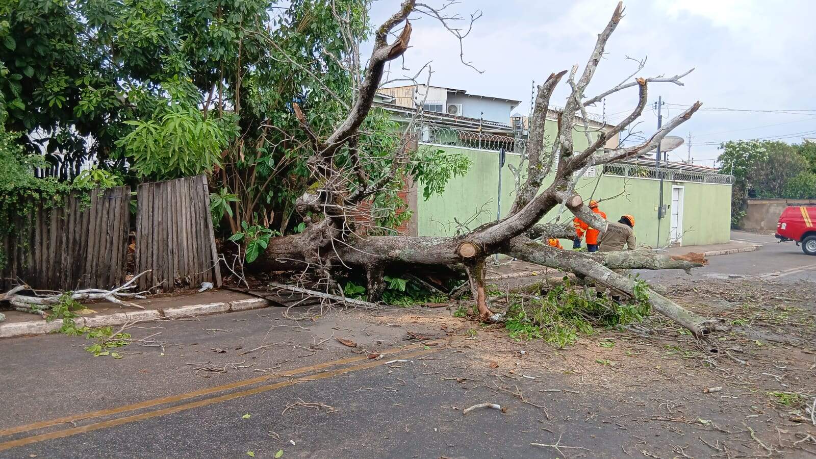 Rajadas de até 40 km/h na rua Isaura Parente derrubou uma árvore caiu e interditou o trânsito.