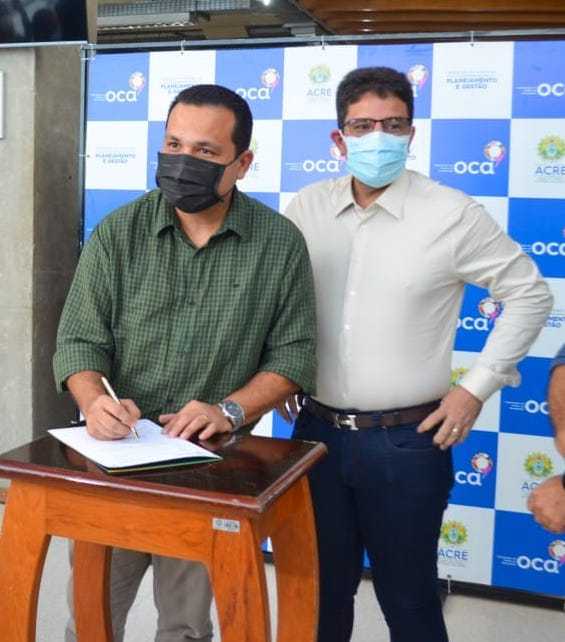 A assinatura do termo foi realizada na praça Revoada, na OCA de Rio Branco, e esteve presente representando a gestão municipal o secretário de finanças Tadeu Hassem que no ato assinou o termo juntamente com o governador Gladson Cameli e Fran Brito que é a diretora responsável pela OCA.