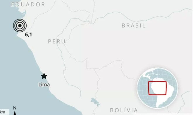 Um terremoto de magnitude 6,1 atingiu a costa norte do Peru nesta sexta-feira (30), informou o Serviço Geológico dos Estados Unidos (USGS). Ao menos 41 pessoas ficaram feridas na região de Piura, três delas com gravidade, segundo a agência de notícias EFE, que cita autoridades locais.