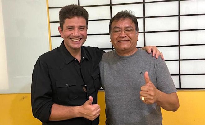 Prefeito de Epitaciolândia, Tião Flores (d), aós reunião com Gladson Cameli nesta quarta, dia 28 - Foto/cedida