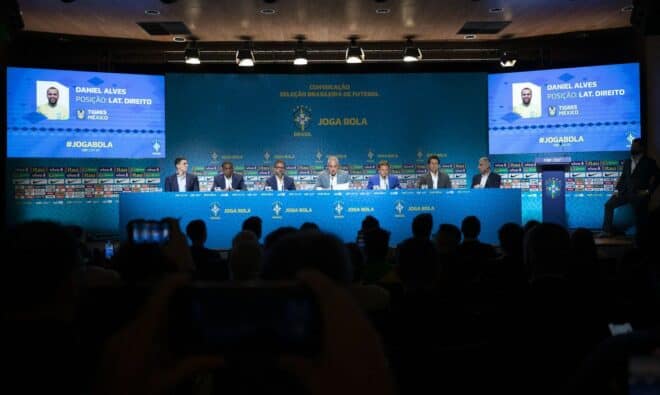Depois de anunciar os 26 convocados da seleção brasileira para a Copa do Mundo do Catar, nesta segunda-feira (7), no auditório da Confederação Brasileira de Futebol (CBF), o técnico Tite foi questionado, em entrevista coletiva, sobre a presença de Daniel Alves na lista. O lateral-direito, de 39 anos, atualmente defende o Pumas (México), mas não disputa uma partida oficial desde 24 de setembro e vem treinando com o time B do Barcelona (Espanha), atrás da melhor forma física. Ele é o jogador mais velho a ser chamado para defender o Brasil em um Mundial.