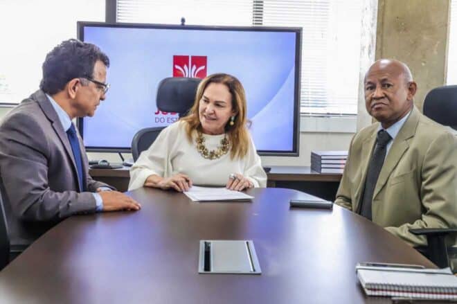 A Presidente do Tribunal de Justiça do Acre (TJAC), desembargadora Regina Ferrari e o presidente da Assembleia Legislativa Estadual, o deputado Luiz Gonzaga, assinaram na tarde desta terça-feira, 02, Termo de Cessão de Uso de um imóvel pertencente ao Poder Judiciário.