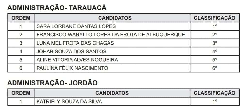 A Presidência do Tribunal de Justiça do Acre (TJAC), por meio do edital n°08/2024, publicado nesta segunda-feira, 15, no Diário da Justiça, convoca estudantes de Administração dos municípios de Tarauacá e Jordão, aprovados no processo seletivo de estagiários, para entrega de documentos.