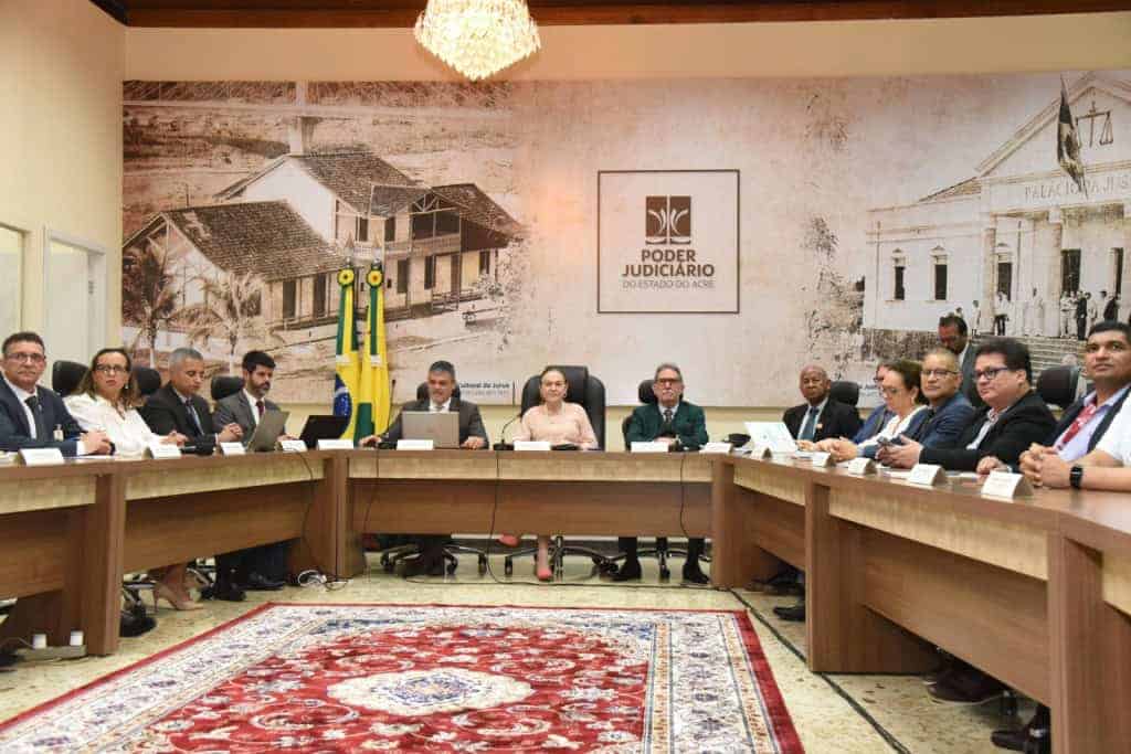 A reunião foi conduzida pelo juiz-auxiliar da Presidência do CNJ, Alexandre Libonati, e contou, pelo órgão nacional, com a participação também do juiz-auxiliar Marcel Corrêa; e dos juízes-auxiliares do TJAC, Zenice Cardozo, Isabelle Sacramento e do juiz-auxiliar da Corregedoria-Geral, Alex Oivane.