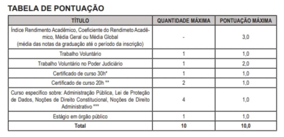*Serão aceitos até 1 (um) certificado de 30 horas, com pontuação individual de 1,0 ponto, conforme item 7.2.3.