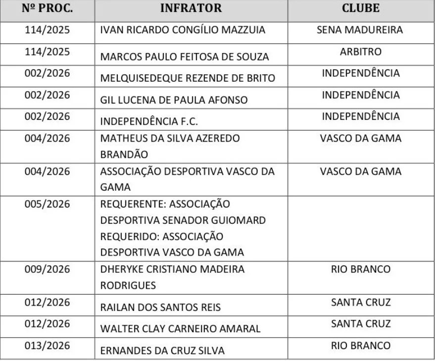 O Tribunal de Justiça Desportiva(TJD) realiza nesta sexta, 27, a partir das 15 horas, na sede da Federação de Futebol do Acre(FFAC) os primeiros julgamentos da temporada de 2026. 11 processos serão analisados pelos componentes da 1ª comissão disciplinar.