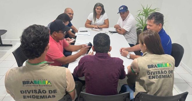 Na manhã desta quinta-feira (04), a Prefeitura de Brasiléia, por meio da Secretaria de Saúde, se reuniu com a equipe para intensificar os esforços no combate à proliferação do mosquito Aedes Aegypti, vetor da Dengue. O encontro teve como objetivo, discutir a implementação de estratégias emergenciais, fortalecendo a prevenção e promovendo a conscientização da população.