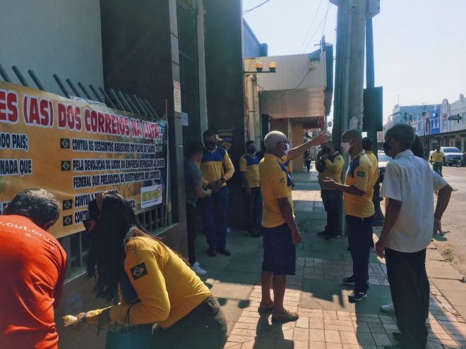 Os trabalhadores dos Correios, liderados pelo o Sindicato dos Trabalhadores dos Correios e Telégrafos do Acre (Sintect-AC), se reuniram na frente da agência central, no início da manhã de quinta-feira, 20. Durante o ato, os manifestantes ocuparam o hall do prédio para demonstrar a revolta com a retirada de direitos.