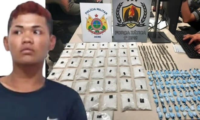 Uma ação dos Policiais Militares da Força Tática do 1° Batalhão resultou resultou na prisão do traficante identificado como Adegilson, de 22 anos, na noite deste sábado, 4, na rua Belo Jardim, no bairro Geraldo Fleming, em Rio Branco.