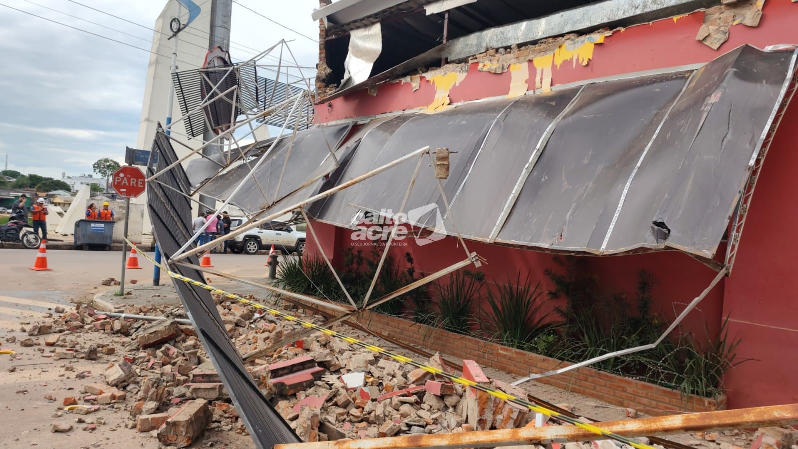 Parte de estrutura de churrascaria desaba e mobiliza equipes no Segundo Distrito de Rio Branco