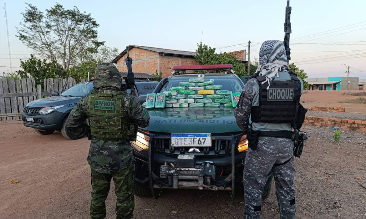 Dois traficantes foram presos nesta quinta-feira (11) com 32 kg de maconha do tipo skunk, durante uma perseguição na BR-425, na região de Araras, em Nova Mamoré.