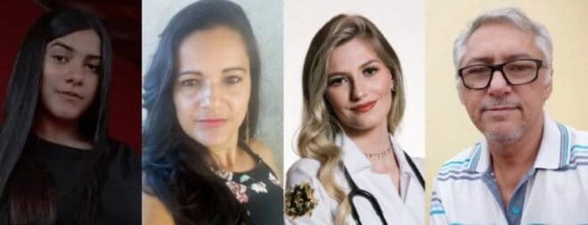 As quatro vítimas fatais do trágico acidente foram identificadas, são elas; Fernanda Lino Santos, grávida de 36 semanas, a mãe dela Silvana Ferreira Lino Rocha, que era acompanhante, a médica Laura Maria Possa, 26, e o motorista José Florença. A enfermeira que ficou seriamente ferida foi identificada como Thaisa Costa, 30.