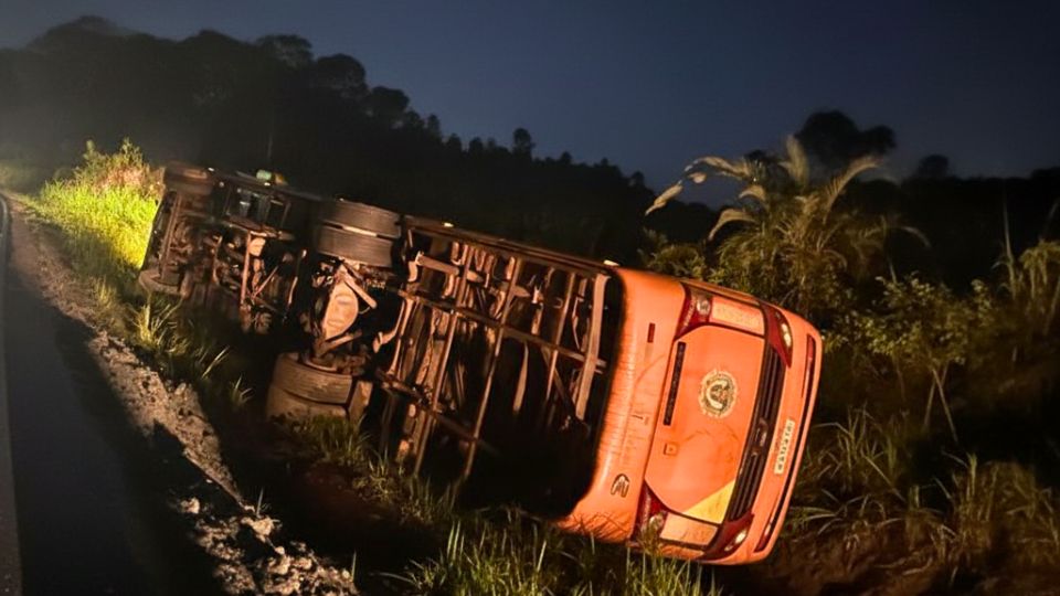 De acordo com as informações iniciais, o motorista perdeu o controle do ônibus após atingir um desses buracos no lado esquerdo da pista. O impacto fez com que o veículo deslizasse para fora da rodovia e tombasse.