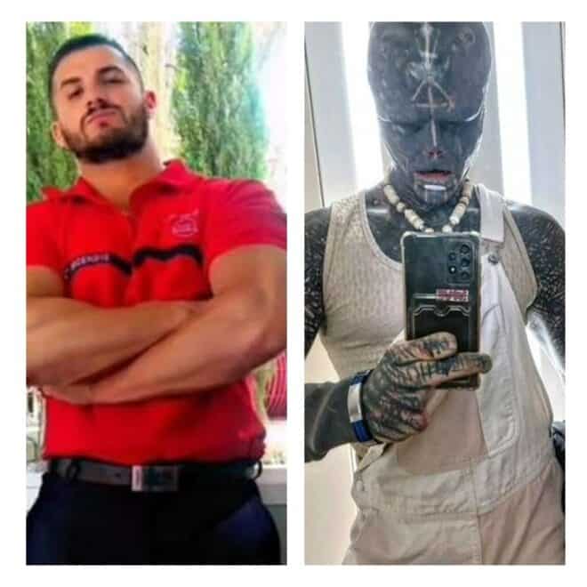 Francês de 33 anos, conhecido como “Black Alien”, além de ter praticamente todo o corpo tatuado, retirou o nariz e outras partes do corpo na transformação