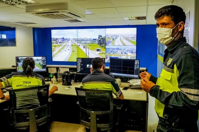 Outro exemplo de videomonitoramento ocorre no Distrito Federal. O DER-DF conta com 61 câmeras instaladas em pontos estratégicos de rodovias que ajudam na fiscalização, mas também na agilidade para socorrer vítimas de acidentes. As imagens são captadas 24 horas por dia e registradas em 10 monitores de TV, observados por sete agentes de trânsito rodoviários. Os profissionais se intercalam no trabalho de monitoramento entre as 6h e às 21h diariamente, inclusive aos finais de semana e feriados.